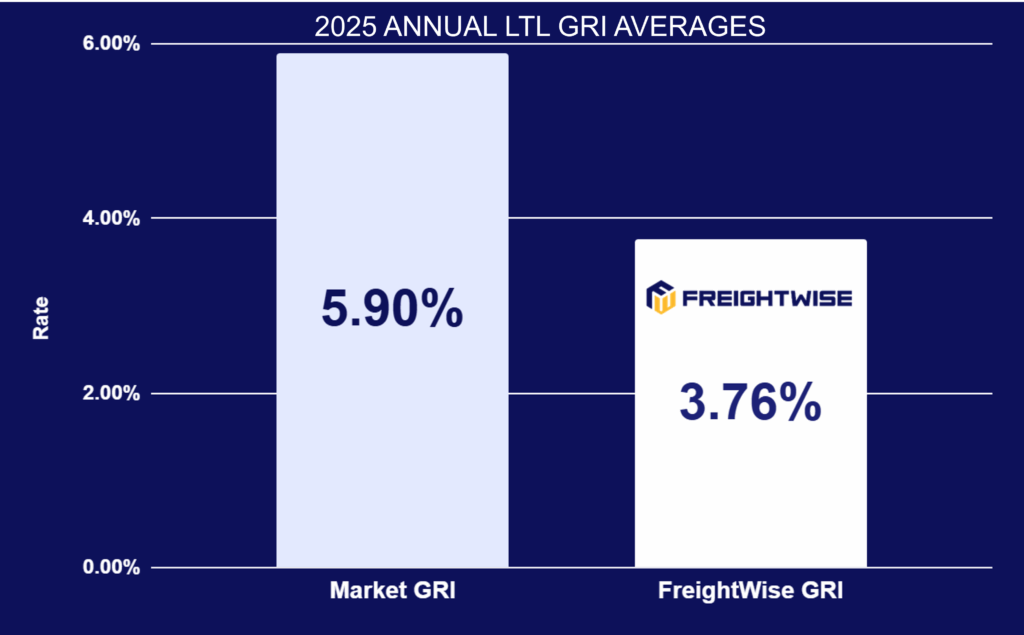 - At FreightWise, we leverage our aggregate spend and our relationships with carriers to help soften the blow. The result? In 2025, the average less-than-truckload GRI was 5.76% and for FreightWise customers it was 3.9%.